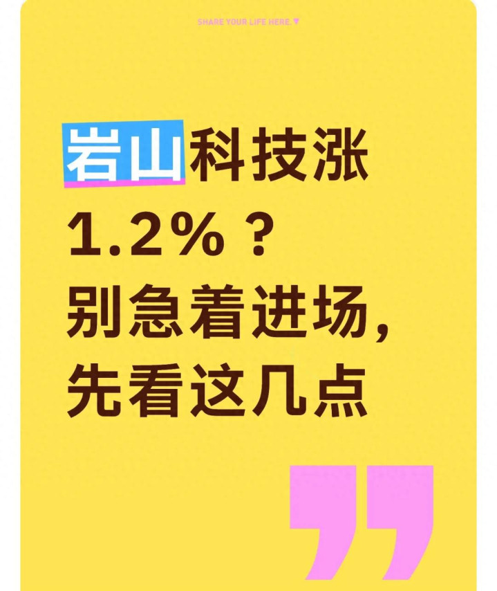 今天一开盘,不少盯着岩山科技的投资者都有点心动:一根小阳线拉了1.2%的涨幅,股吧里立刻有人喊“要启动了”“赶紧上车”。但如果你只看这1.2%的涨幅就冲动入场,很可能会踩坑——这背后藏着几个容易被忽略的细节,搞懂了再决定要不要跟进。