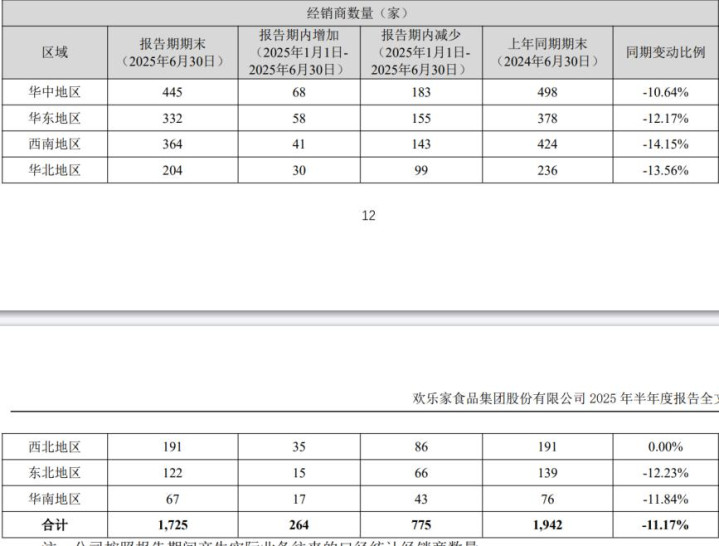 而欢乐家渠道体系收缩则或是加剧业绩恶化的原因之一。2025年上半年,欢乐家经销商数量较年初净减少511家,报告期内经销商流失总数约775家。