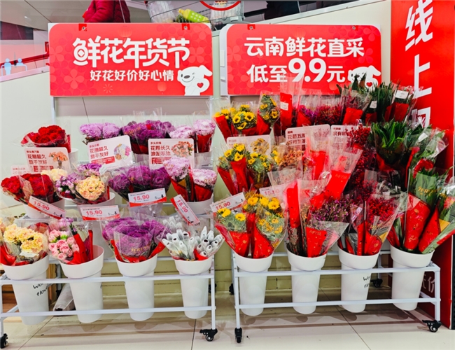 从门店实际反馈来看,小年前夕的购物车越来越呈现“组合式”特点:新鲜鸡蛋、肉品、奶制品等民生品类,常与鲜花、礼盒、蜜饯糖果一同出现。他们既看重节日的仪式感与情感表达,也注重实用性与性价比,追求“过得热闹,也要买得实在”。