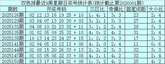 上期开奖:福彩双色球第2026001期奖号为:02 06 11 12 13 33 + 15,其中红球三区比为3:2:1,奇偶比为3:3,首尾间距为31,大小比为1:5。